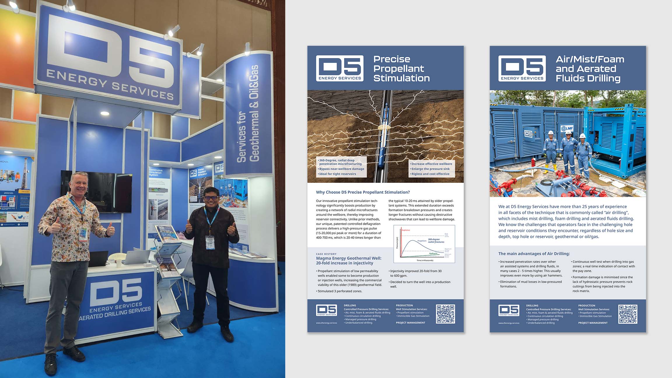 Finally, the brand was brought to life across a wide range of applications. Posters were created for various booths at international trade fairs and exhibitions, ensuring a strong and recognisable presence in competitive exhibition environments. Together with a set of social media templates, this resulted in a coherent and flexible visual system that supports D5 Energy Services in both everyday communication and high profile presentations.